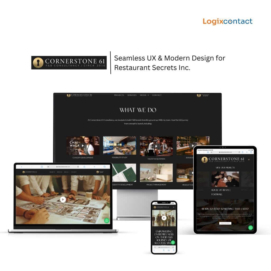 Logixcontact partnered with Cornerstone 61 to create a seamless, modern website that reflects their expertise as an F&B consultancy. From concept to launch, we designed a clean, UX-focused platform that showcases their full suite of services—including concept development, feasibility studies, talent acquisition, and project management. The site highlights their portfolio of brands like Chai-Wala and Food Inn, while communicating their mission of 'Empowering Entrepreneurs on Their F&B Journey'. With intuitive navigation, strong visuals, and clear calls-to-action, Logixcontact helped Cornerstone 61 establish credibility, attract new clients, and scale their consultancy business with confidence.